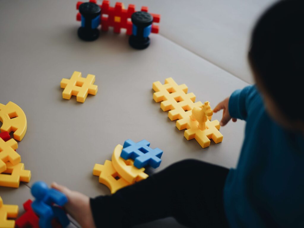 夫がシャワーを浴びている間、ベビーサークルの中でもふと遊ぶ。最近のもふは、おもちゃをベビーサークルの外にぽいぽい投げるので、やわらかくて床にダメージが少なそうなニューブロックを出すことが多い。