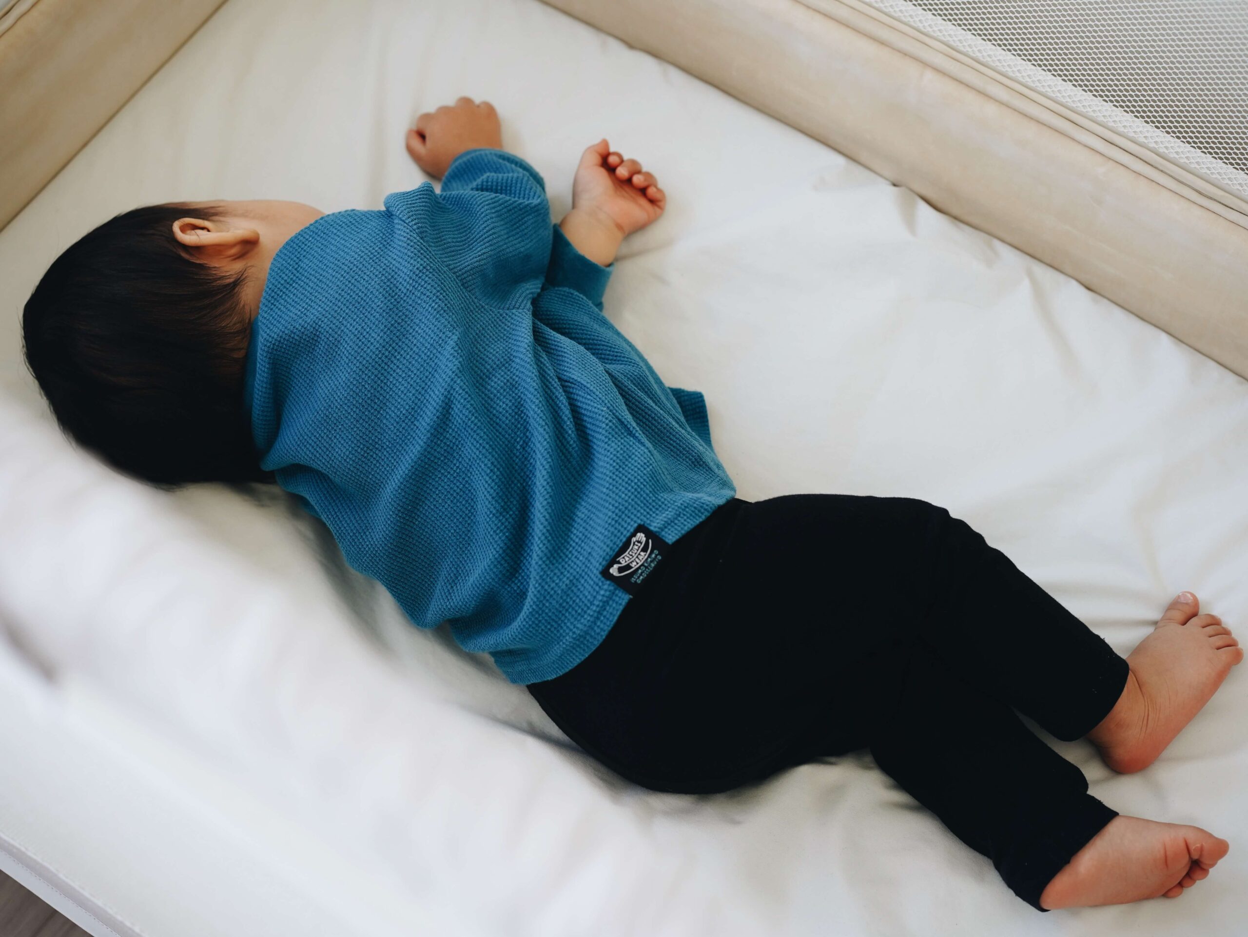寝かしつけは、ベビーサークルの中に大人の掛け布団を敷いて、その上でする。もふが寝たら、ベビーベッドにそっと移す。