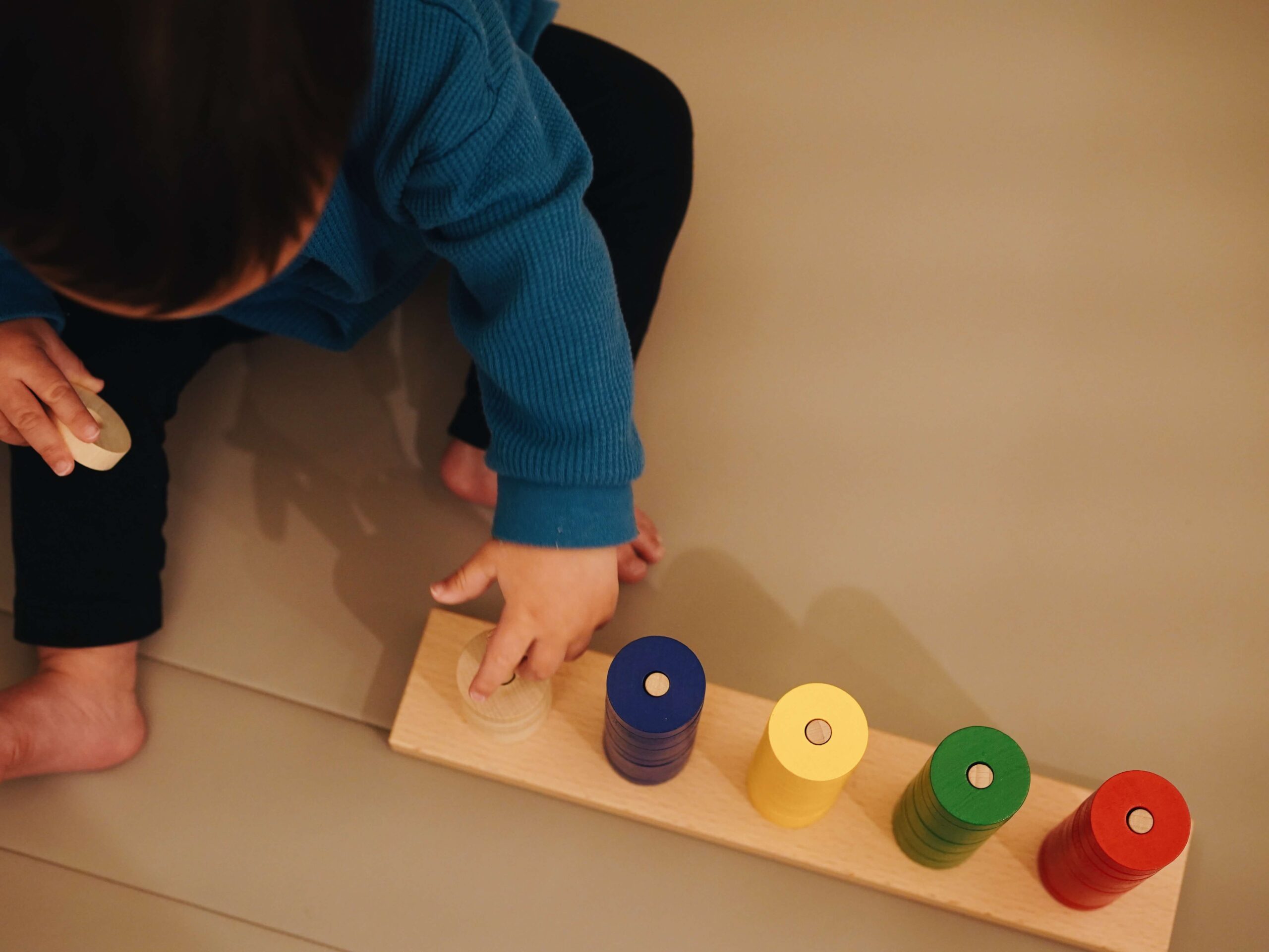 棒にコマを刺す動きもスムーズになってきたので、初めて紐も出した。もふはまだ紐にコマを通すことはできないけれど、私が通してあげると楽しそうに触っている。